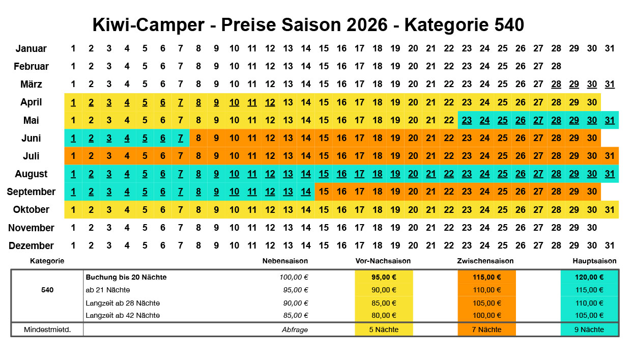 Grundsätzlich sind unsere Camper immer mit einer Markise und einer Anhängerkupplung ausgestattet. Die Markise wird für dich bei gutem wie bei schlechtem Wetter sprichwörtlich goldwert sein. Die Anhängerkupplung benötigst du, wenn du E-Bikes transportieren möchtest. Des Weiteren befinden sich Kehrschaufel, Besen, Fußabstreifer, Taschenlampe, einen Tisch und zwei Stühle im Kiwi-Camper. Für die Toilette geeignetes Papier und die dazugehörige Chemie sind im Camper mit dabei. Es ist immer eine volle Gasflasche im Fahrzeug enthalten. Alle Kiwi-Camper haben eine Jahresvignette für Österreich. So sparst du dir Geld und kannst lästige Zwischenstopps an der Grenze vermeiden. Aber Achtung! Viele Tunnel und Brücken sind in Österreich mautpflichtig.